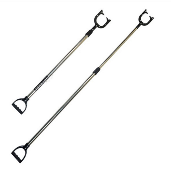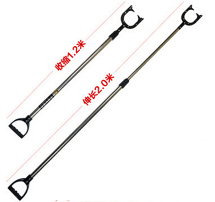 材料:纯钢材,厚度:1.5mm重量:1.6KG 长度:收缩1.6m 伸展:2m 手柄外径:28mm 特点:自由拉伸,收放自如,尾部带手把,头部可拆卸。